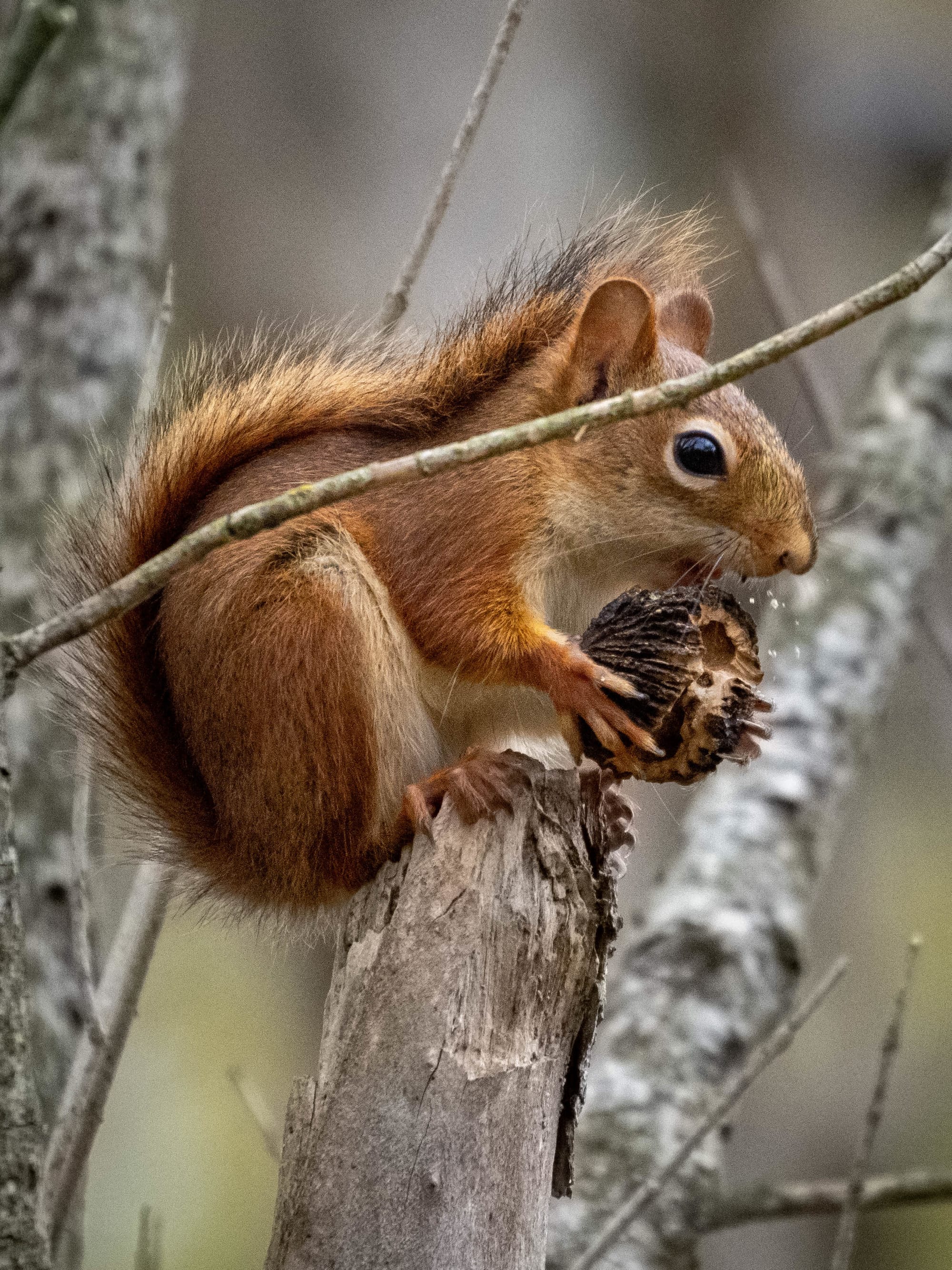 Red squirrels are smaller and more secretive than gray squirrels - they stay under cover and are rarely spotted in the open. They are fierce defenders of their territory and larders and will readily chase gray squirrels despite the size difference.