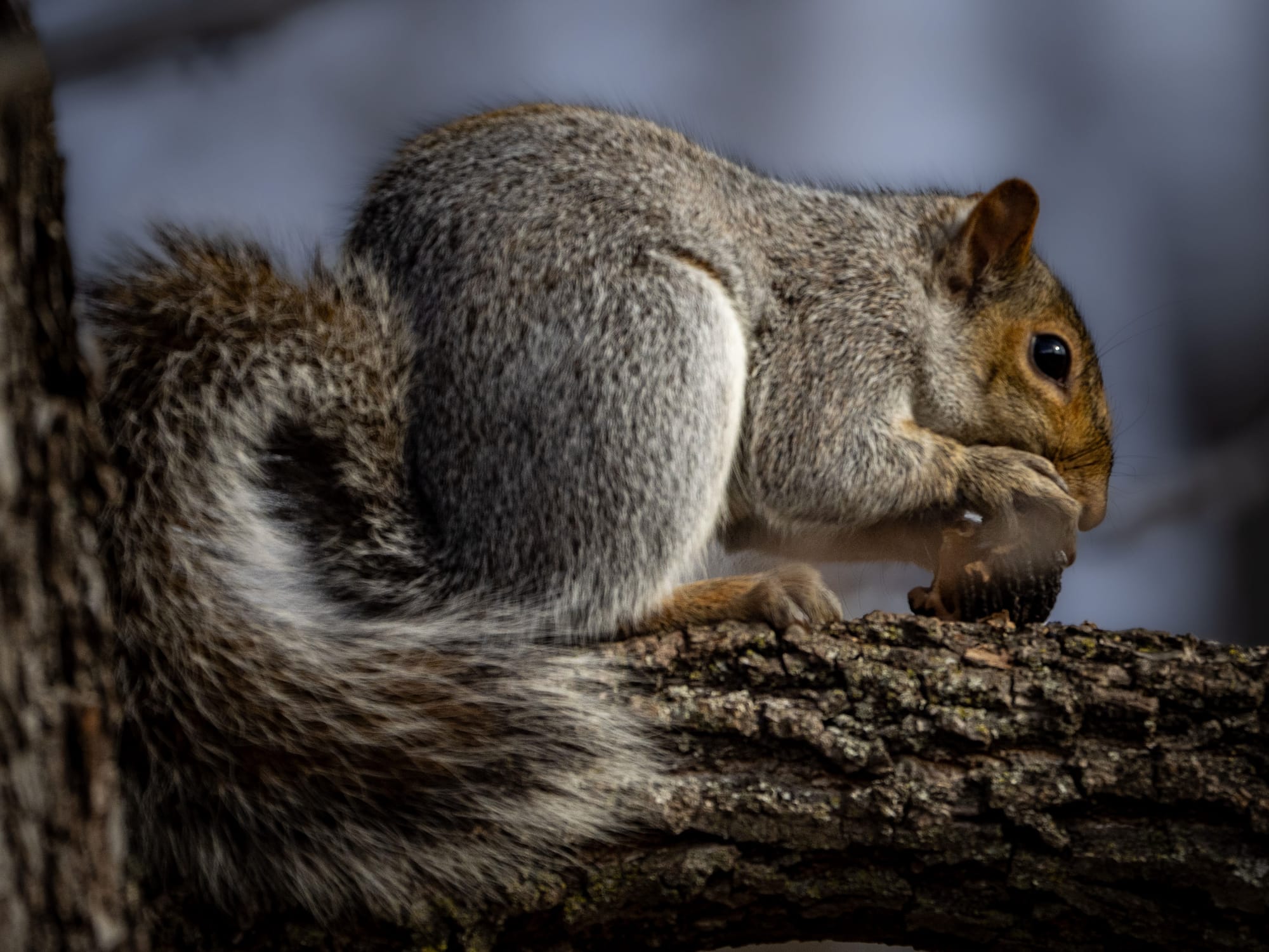 Deep in the winter after last season's mast year of Black walnuts the gray squirrels and red squirrels are spending the currency they banked before the cold set in.