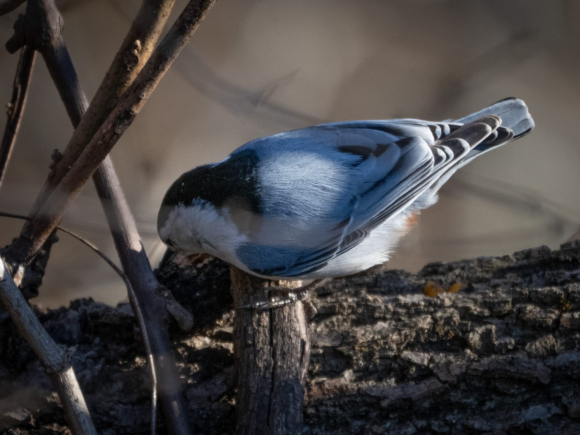 Once the squirrels are through chickadees, nuthatches, jays, and woodpeckers probe the shells for pieces too small for squirrels to bother with. Black walnut is among the highest-energy wild foods found in the park. What the squirrels miss could be a bird's margin of survival.
