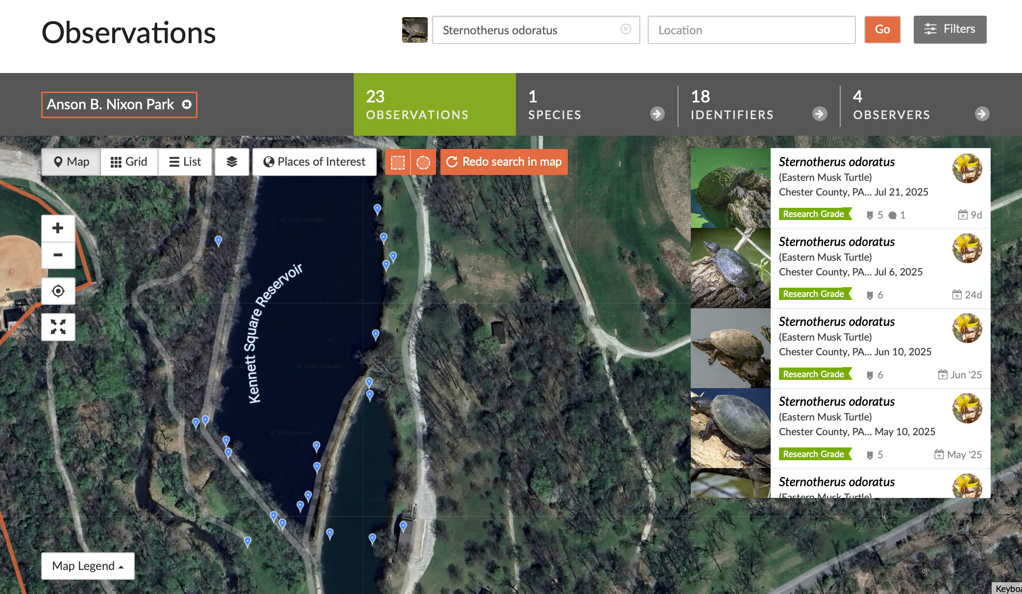 Primarily active at dawn and dusk, this single representative from the family Kinosternidae (the musk and mud turtles) found in the park tends to walk along the bottom rather than swim in open water.