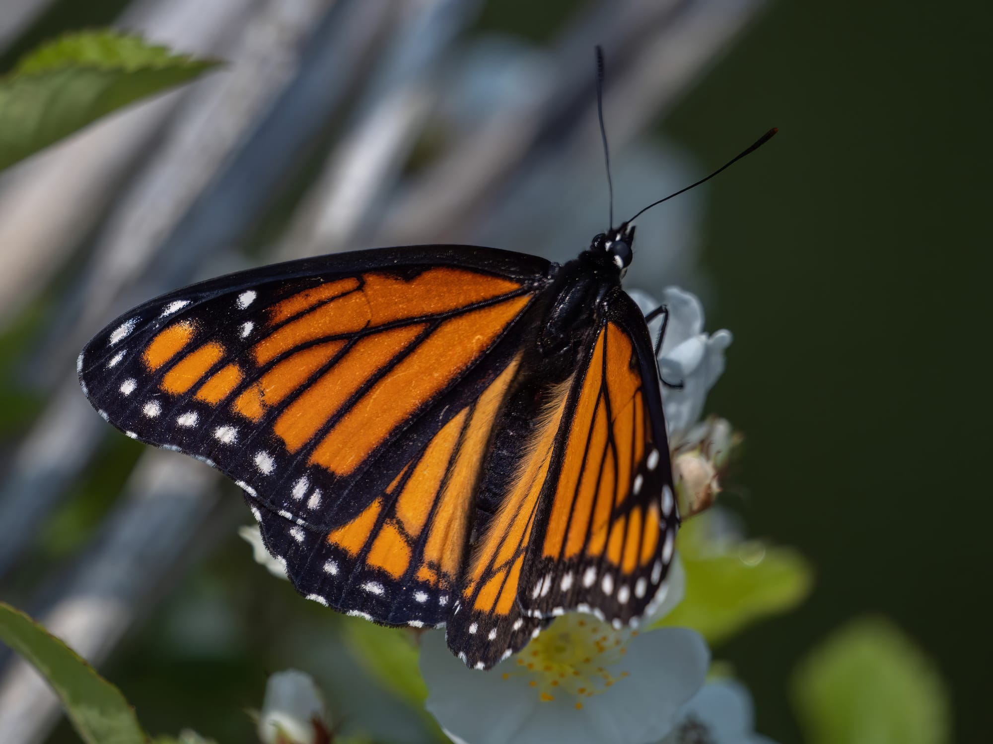 I've also spotted a few Viceroy butterflies at the park. They closely resemble monarchs, an example of Müllerian mimicry, where two species that are equally distasteful to predators evolve similar warning patterns. Monarchs obtain their defensive chemicals from milkweed, while viceroys rely on bitter compounds from willow and poplar trees. Both benefit from sharing a warning pattern because predators learn to avoid both if they have an unpleasant encounter with one.
