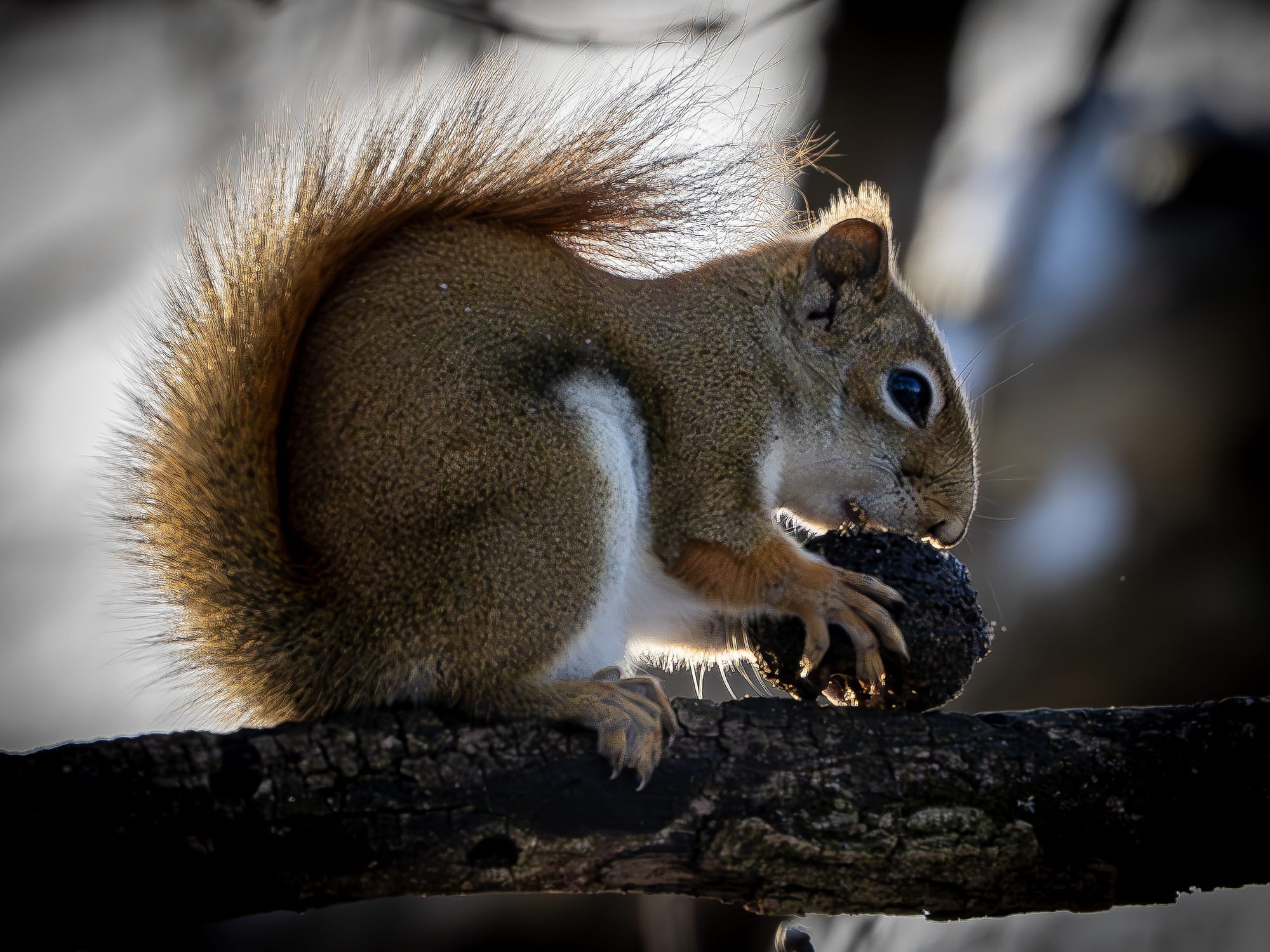 With the winter solstice in the rear-view mirror daylight hours slowly increase as the earth tilts towards the spring equinox in March. It's quieter, in some ways, at the park, but the winter choruses are in full voice; Canada Geese honk impatiently as they rise from the pond or sweep down out of the sky, bird alliances chatter away, Red Bellied and Pileated woodpecker calls echo through the woods, Red Squirrels bark and trill at the intruding Grey Squirrels raiding their larders, and both gnaw loudly on this year's bumper crop of black walnuts.
