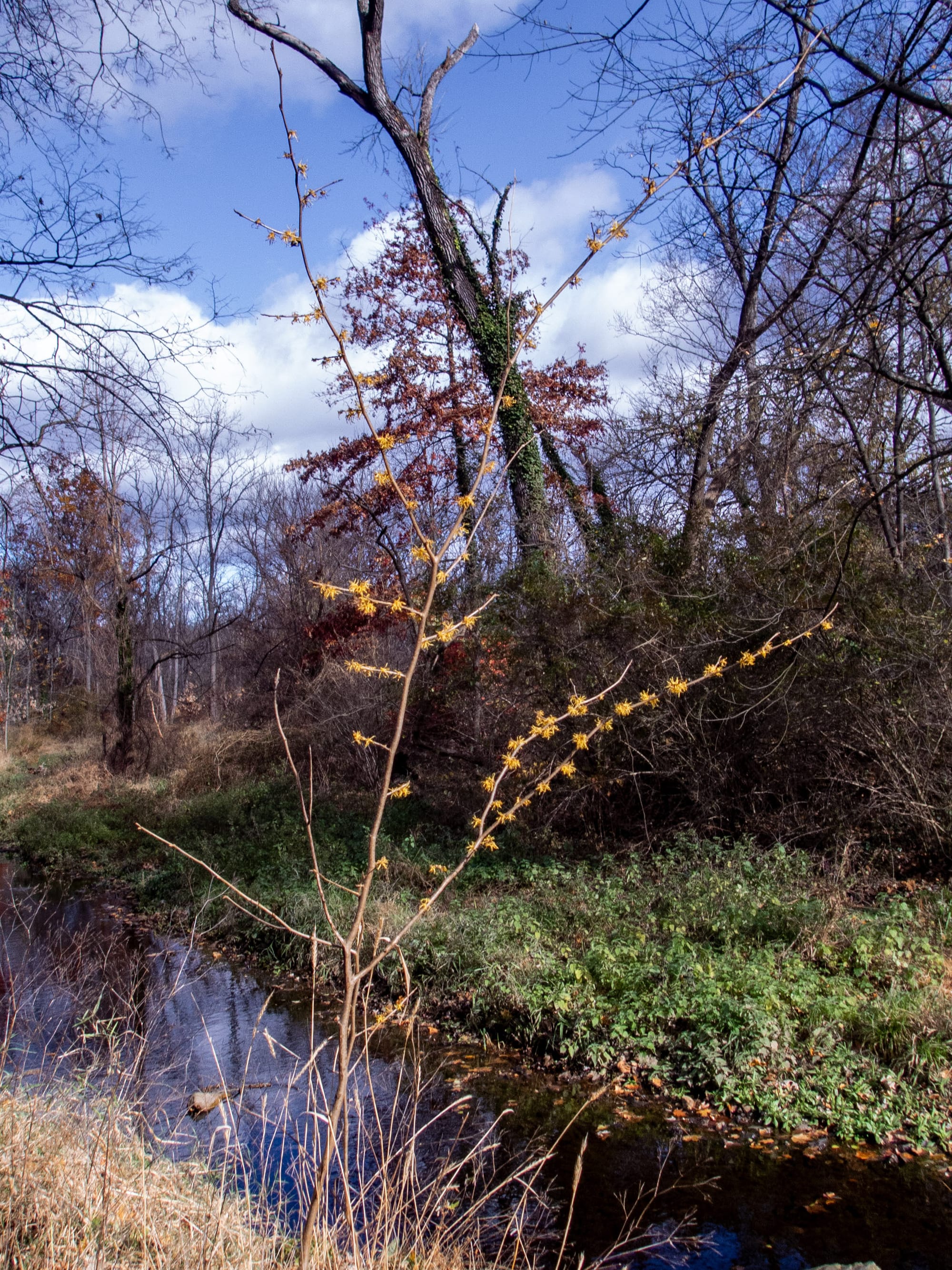 Keep your eyes open and you may catch the latest woodland blooms in Nixon Park this year. While maples and hickories are letting go of their last leaves, witch hazel reveals its strange yellow threads of unexpected color.