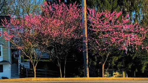 The purplish pink buds of Eastern Redbud trees have been putting on their annual show this past month or so.