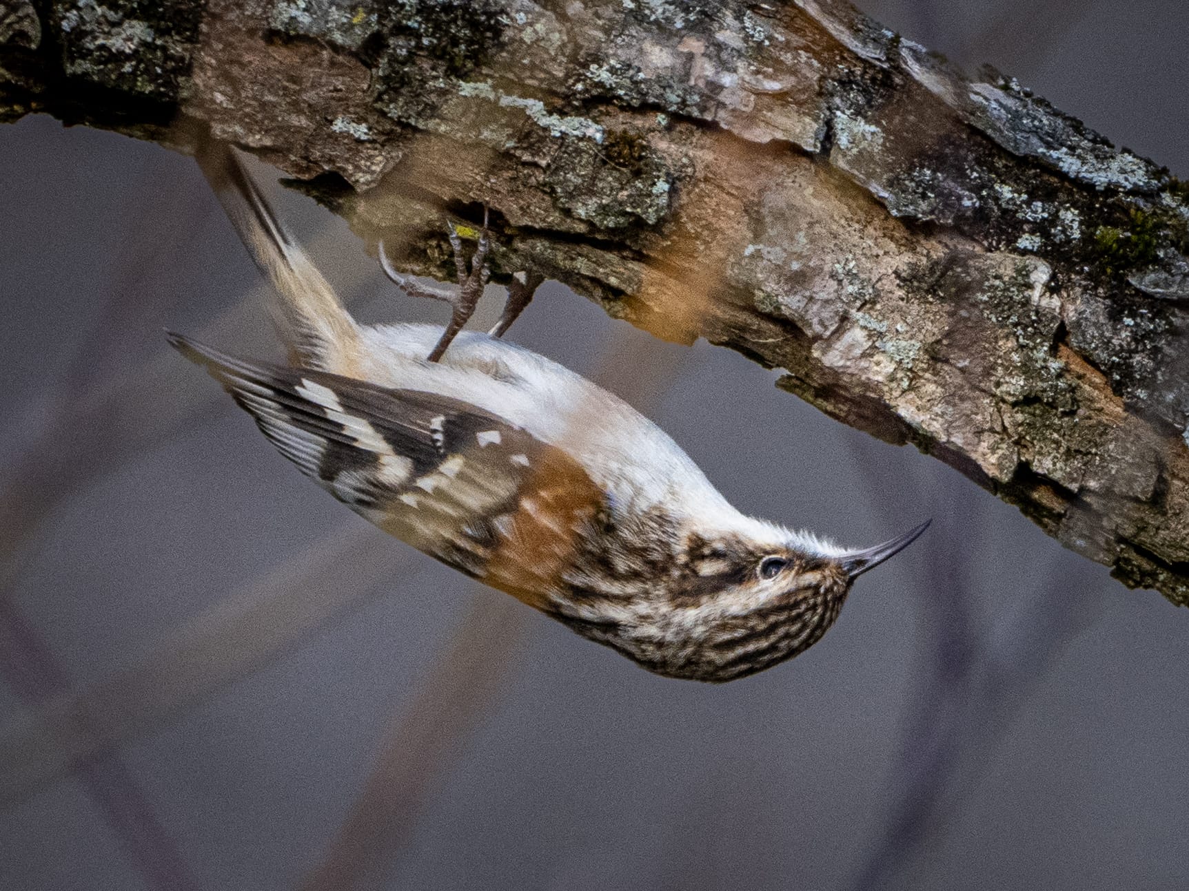 Brown Creeper, White-breasted Nuthatch, Gold-crowned Kinglet, Downy Woodpecker
